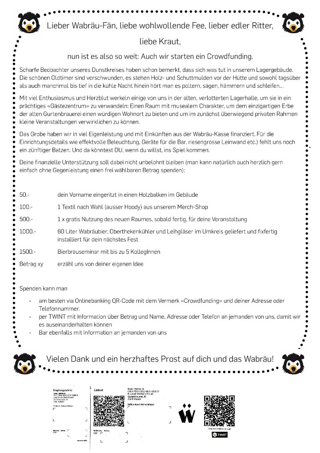 Bleiben Sie über Wabräu auf dem laufenden, abonnieren Sie unseren Newsletter !